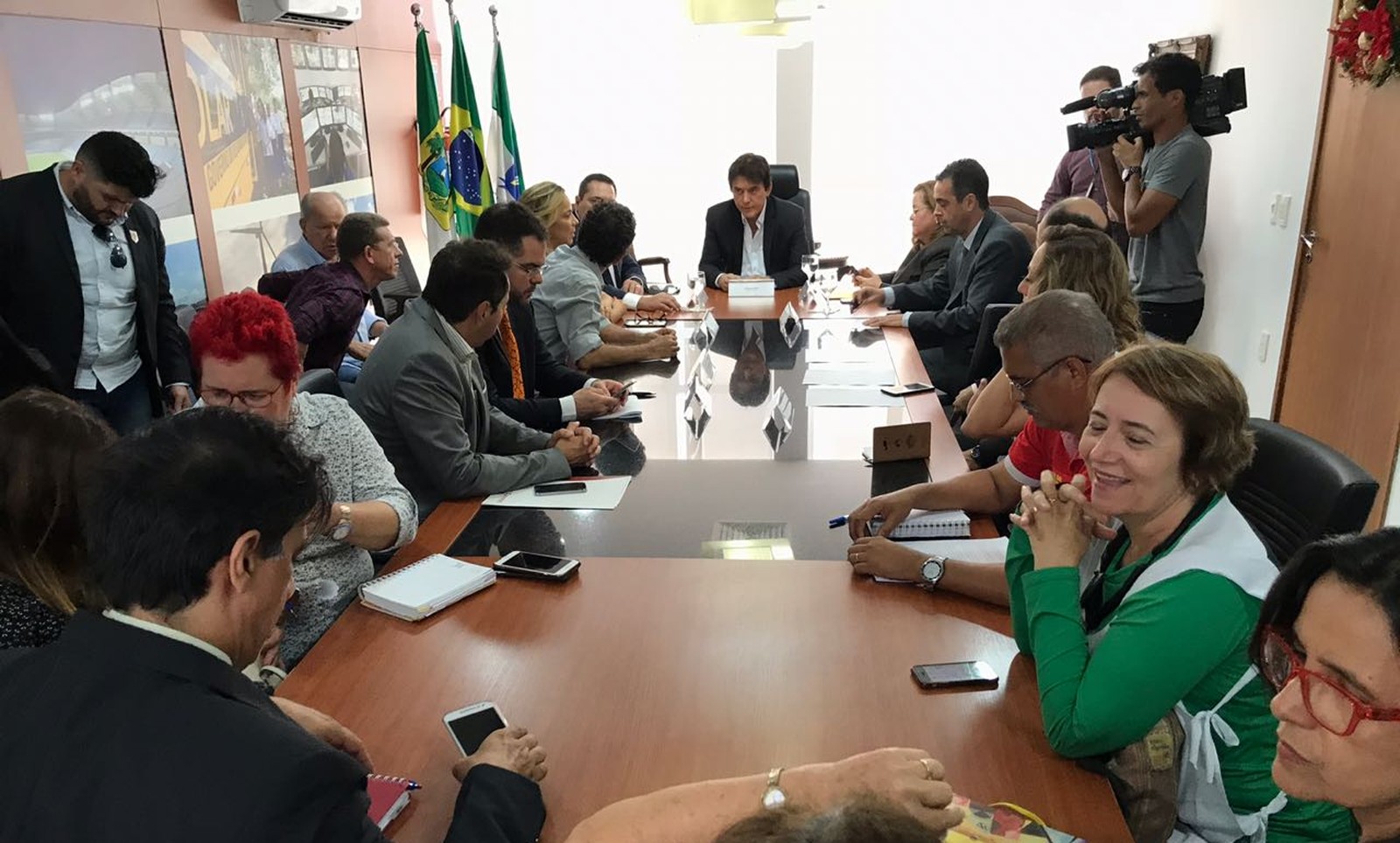A reunião começou por volta as 11h e durou mais de uma hora e meia. Durante o encontro, o governador, assessores e secretários de estado informaram aos servidores que ainda não tinham previsão para o pagamento das folhas de novembro, dezembro e do 13º salário. Eles ainda afirmaram que prevêem para o fim da tarde desta segunda-feira a definição de um calendário.